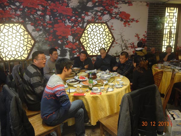 2013-12-30中午,公司全體人員進(jìn)行年終尾牙聚餐。首先周總代表全體股東發(fā)表發(fā)言,吃飯期間穿插摸獎,領(lǐng)導(dǎo)敬酒將氣氛推向高潮。總之這次活動取得圓滿成功,大家都吃得很開心,玩得也很盡興。通過本次公司聚餐,同事之間有了一個更好的交流機(jī)會,不僅加深了同事之間的感情,還增強(qiáng)了整公司的凝聚力。